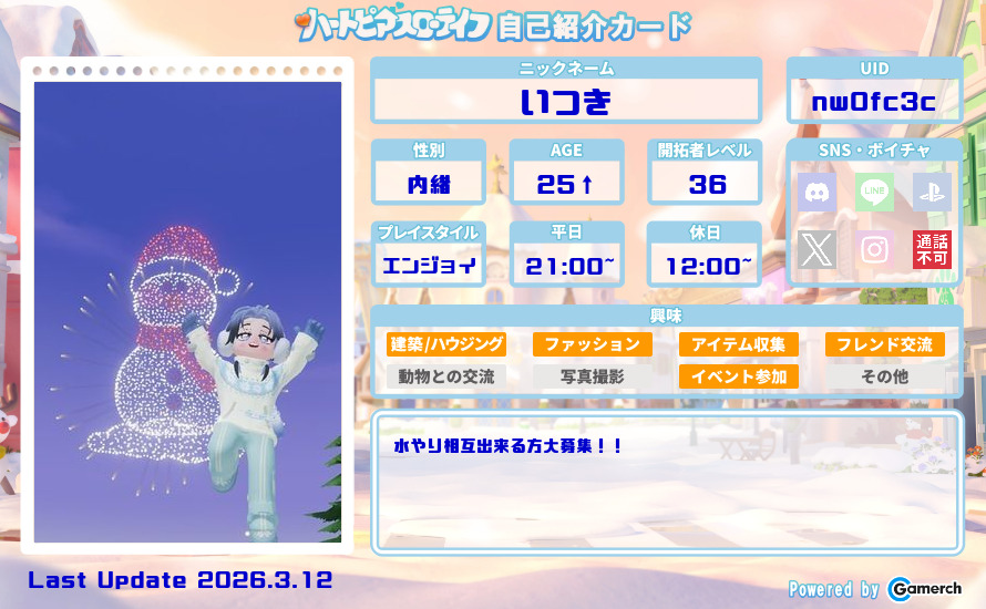 仲良くお話しながらプレイできるフレさん募集中!